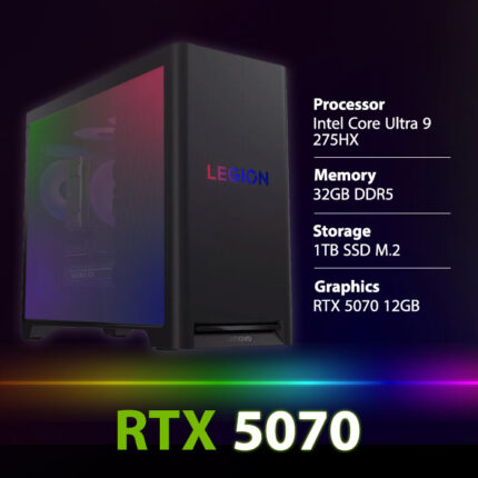 PC Gaming Lenovo Legion T5 30IAX10 Intel Core Ultra 9-275HX CPU, 32GB Ram, 1TB SSD M.2, NVIDIA GeForce RTX 5070 12GB GPU, Wi-Fi, Free Dos – Eclipse Black